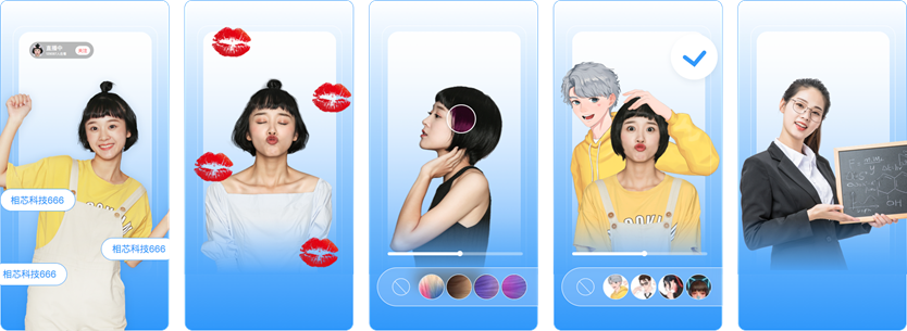 在虚拟社交、直播与短视频等业务爆发式增长的早期,视频特效、智能美颜与创意贴纸等互动玩法受到大量关注。面对市场刚需,相芯基于业界最前沿的人脸、人体、手势和分割AI算法,推出AR视频特效SDK,聚合智能美颜美妆、AR贴纸(2D/3D/AR mesh等)、人像分割、绿幕抠像、手势与表情识别等功能,助力短视频、直播及音视频通话类平台提升用户互动体验。